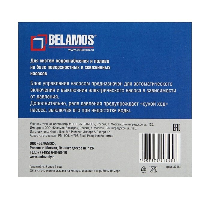 Блок управления насосом "Беламос" BRIO-2015