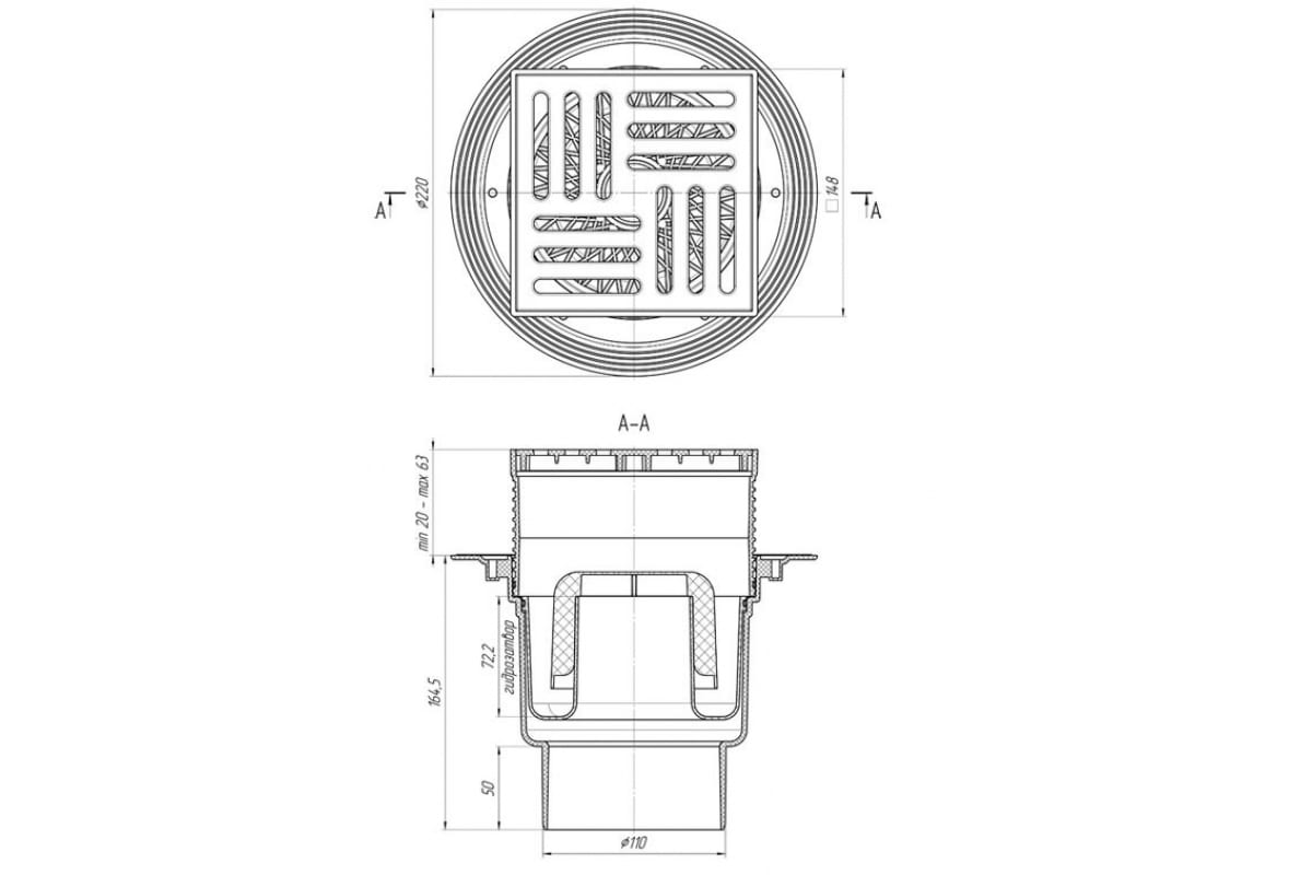 Трап АНИ Пласт регулируемый, вертикальный выпуск, гидрозатвор, Дн 110, пластиковая решетка, 150х150 мм TA1710 004-0236 дополнительные характеристики: