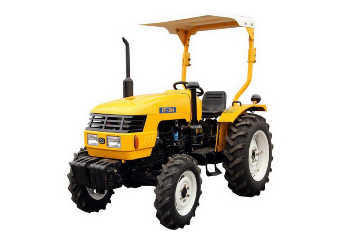 Садовый трактор с козырьком, дугой безопасности, гидроусилителем руля и гидровыходами DONGFENG DF 304 может выполнять широкий спектр сельскохозяйственных работ. Узел сцепки позволяет присоединять дополнительное оборудование. На дугу безопасности крепится козырек, который защищает оператора от солнца или осадков. Гидроусилитель руля обеспечивает более комфортное управление. На тракторе установлены три прибора освещения, что дает возможность работать в темное время суток. Колея составляет 1100-1400 мм. Двигатель ZN 390T мощностью 30 л.с. приводит в движение трактор и задействует все соединенные с ним орудия.