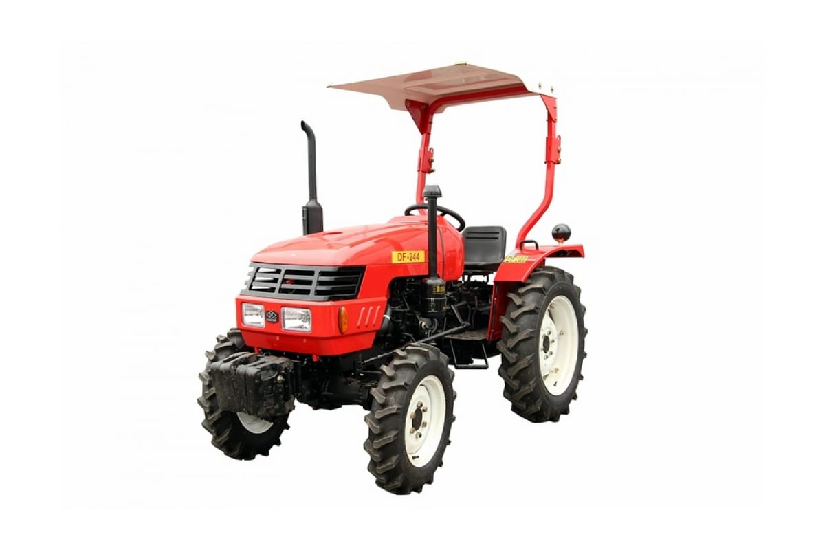 Садовый трактор с козырьком, дугой безопасности и гидровыходами DONGFENG DF 244 предназначен для выполнения различных садовых работ на небольшом по площади участке. Может оснащаться плугом, почвофрезой, сенокосилкой, культиватором, картофелесажалкой, щеткой коммунальной, отвалом снеговым, граблями, снегоуборщиком, экскаватором задненавесным, бороной дисковой и сеялкой. Козырек убережет оператора от мелкого дождя, либо палящего солнца. Трактор имеет поворотники и передние фары, что позволяет передвигаться по трассе. На рабочей панели выведены датчики: водный термометр, датчик давления масла, амперметр и датчик давления воздуха.