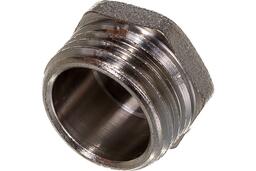 Заглушка в трубу имеет наружную трубную цилиндрическую резьбу, совместимую также с внутренней конической трубной резьбой.