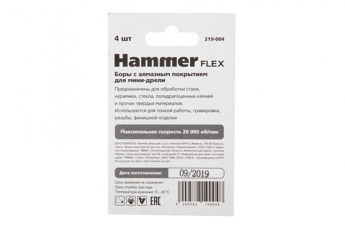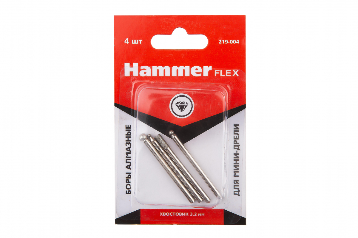 Боры алмазные Flex 219-004 HAMMER 623073 используются для работы с мини-дрелью. Предназначены для обработки полудрагоценных камней, стали, керамики, стекла и т.д. Служат для ювелирной работы, гравировки.