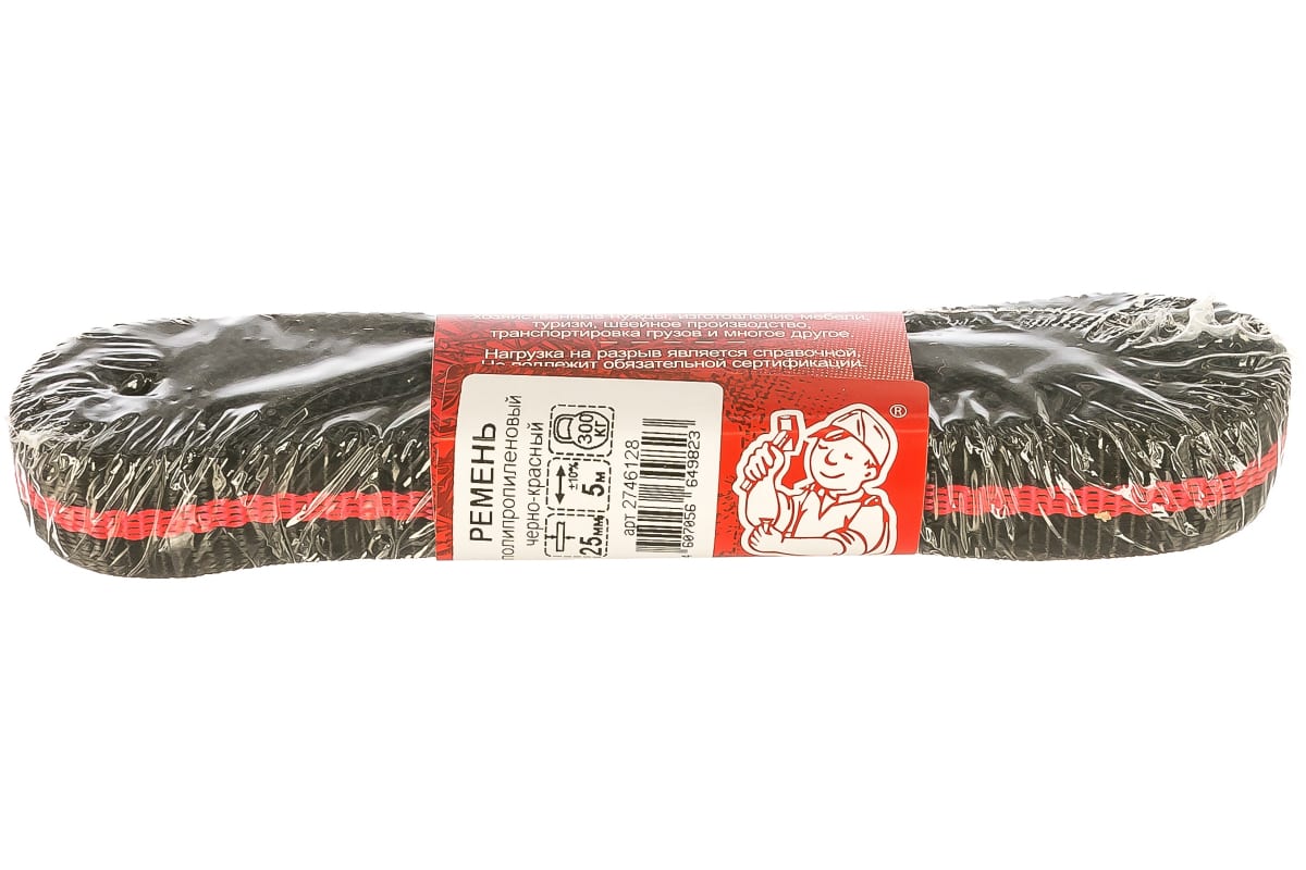 Полипропиленовый ремень, 25мм черн/красн 5 м Стройбат 331310 выполнен из полипропиленовой мультифламентной нити. Ремень устойчив к воздействию химических веществ и погодным условиям.
