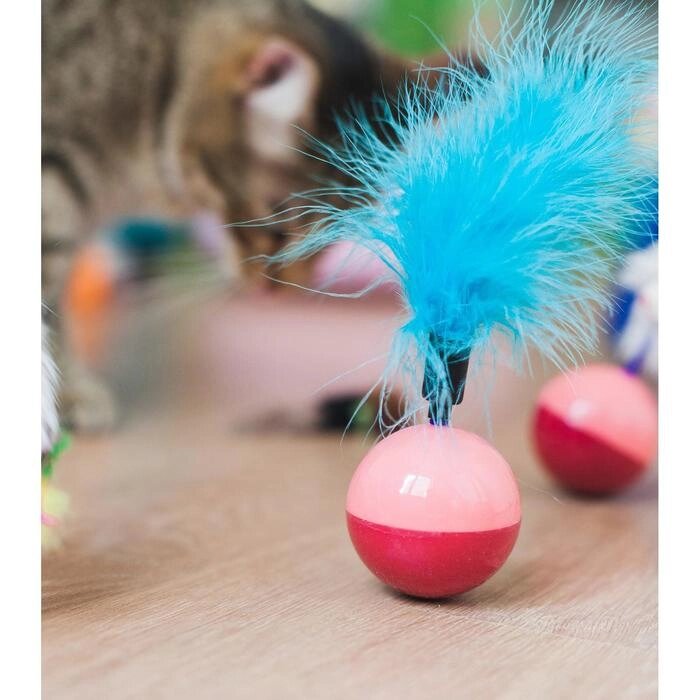 Игрушка-неваляшка для кошек с перьями, микс цветов