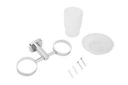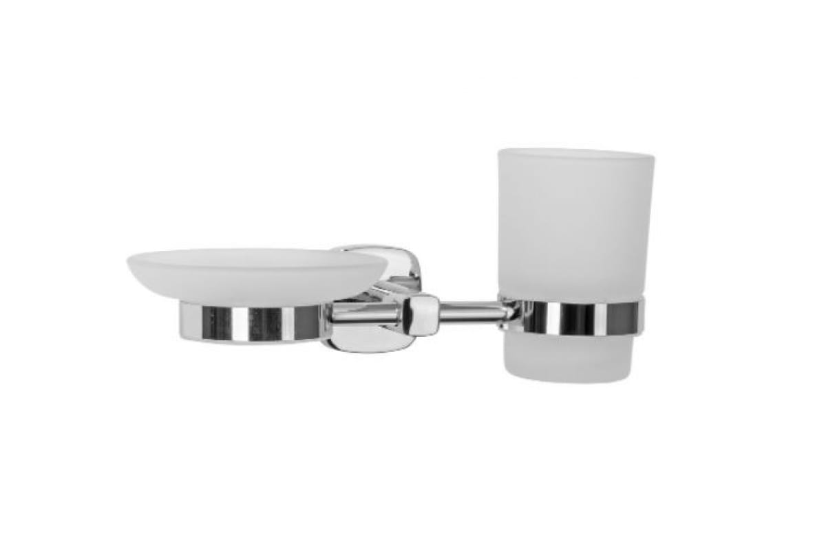 Держатель с мыльницей и стаканом Аквадекор ELLER стекло, металл/хром ATW-4019 современное решение для ванной комнаты, совмещает в себе два необходимых предмета: мыльницу и стаканчик из матового стекла.