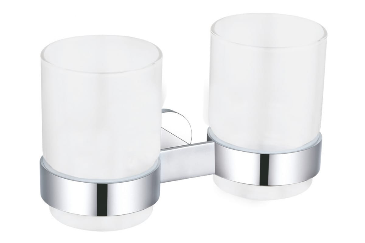 Двойной стакан с настенным держателем RavSlezak стекло, хром/белый YUA0202CB - стильный предмет интерьера, предназначенный для ванной комнаты. Крепится на стену. Материал, применяемый для производства аксессуара - латунь/стекло. Практичная и в то же время продуманная вещь, выполненная в стиле модерн.