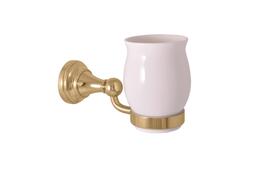 Одинарный стакан с настенным держателем RavSlezak фаянсовый, цвет золото MKA0201Z - стильный предмет интерьера, предназначенный для ванной комнаты. Крепится на стену. Материал, применяемый для производства аксессуара - латунь/фаянс. Практичная и в то же время продуманная вещь, выполненная в стиле ретро.