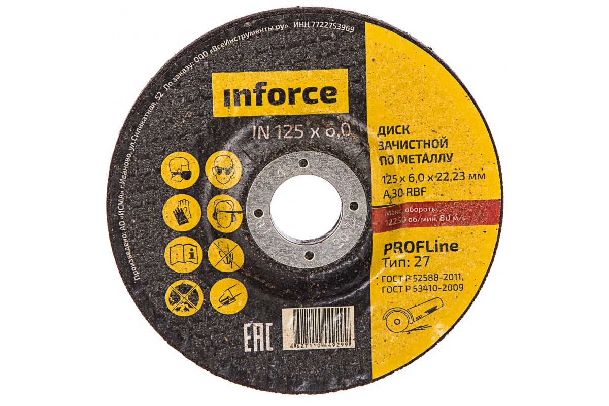 Диск шлифовальный вогнутый по металлу (125х22х6 мм) Inforce 11-01-116
