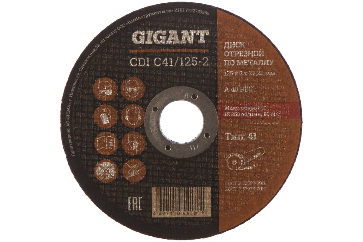 Диск отрезной по металлу (125х2х22 мм) Gigant CDI C41/125-2 (Россия)