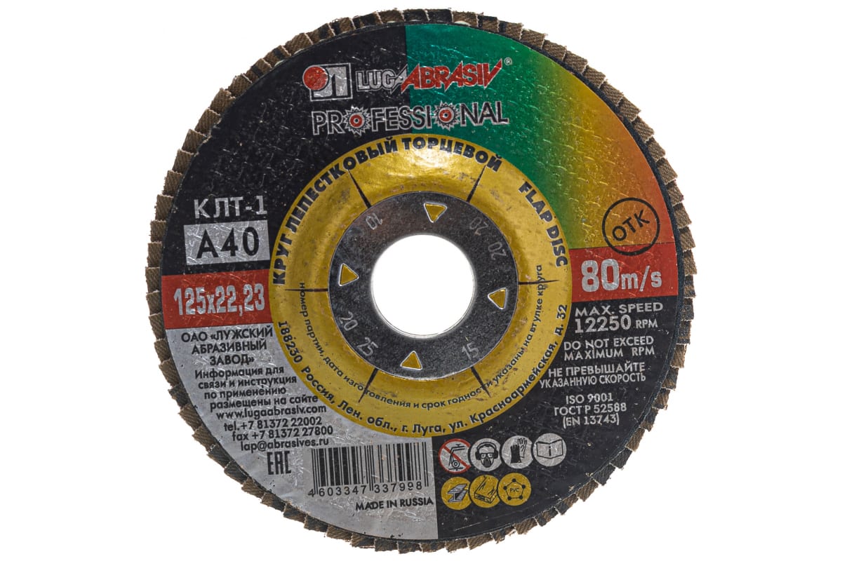 Круг лепестковый торцевой (125х22.2 мм; P40) Луга-Абразив 3656-125-40