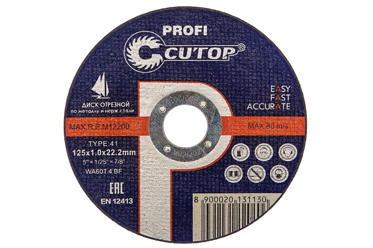 Диск отрезной по металлу T41 (125х22.2 мм) для УШМ CUTOP 12510