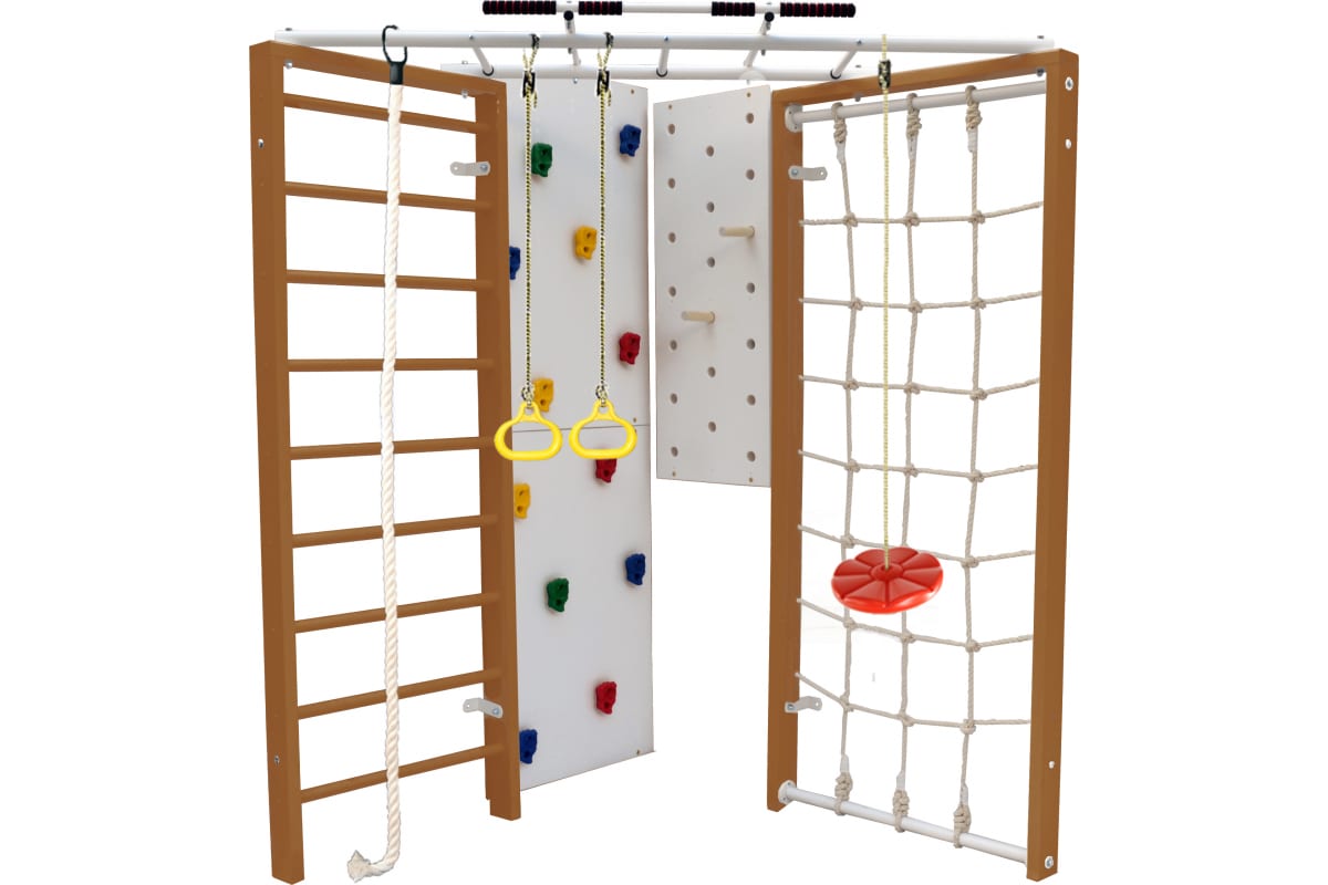 Шведская стенка Kampfer Fantastic, №2 ореховый, красная лиана K07139011 – домашний спортивный комплекс, который включает в себя обширный набор аксессуаров: турник, шведскую стенку, канатный лаз, скалодром, пегборд, канат, кольца и лиану.