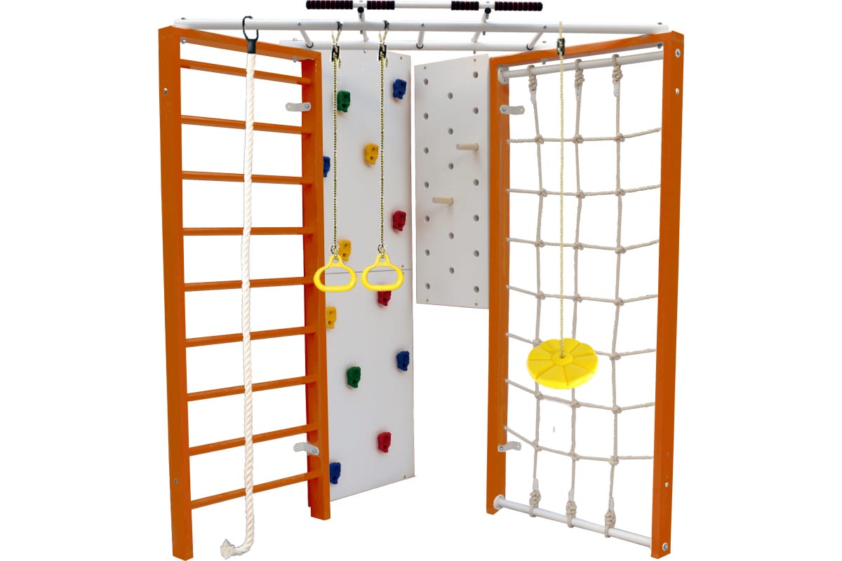 Шведская стенка Kampfer Fantastic, №3 классический, желтая лиана K07139013 – домашний спортивный комплекс, который включает в себя обширный набор аксессуаров: турник, шведскую стенку, канатный лаз, скалодром, пегборд, канат, кольца и лиану.