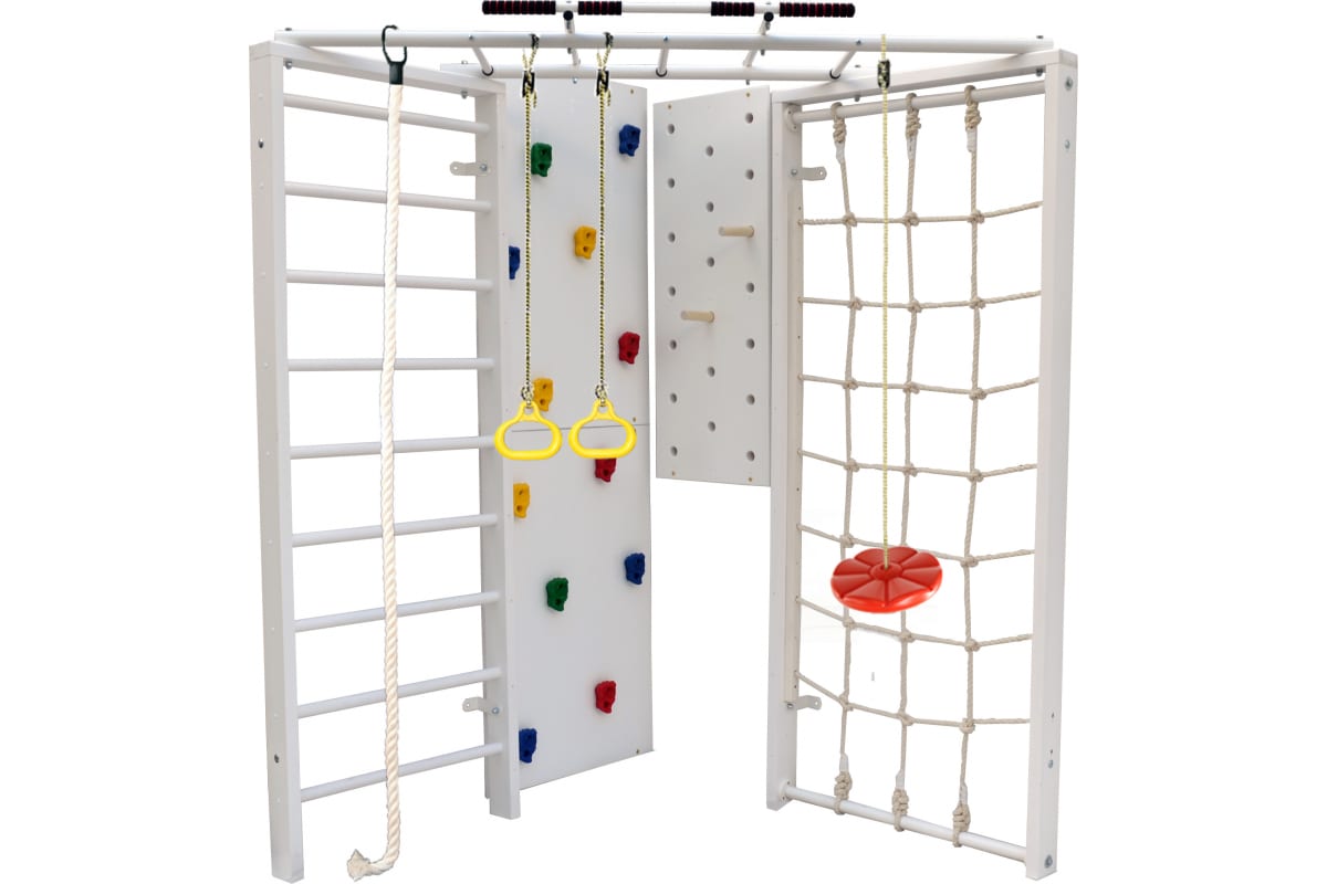 Шведская стенка Kampfer Fantastic, №6 жемчужный, красная лиана K07139027 – домашний спортивный комплекс, который включает в себя обширный набор аксессуаров: турник, шведскую стенку, канатный лаз, скалодром, пегборд, канат, кольца и лиану.