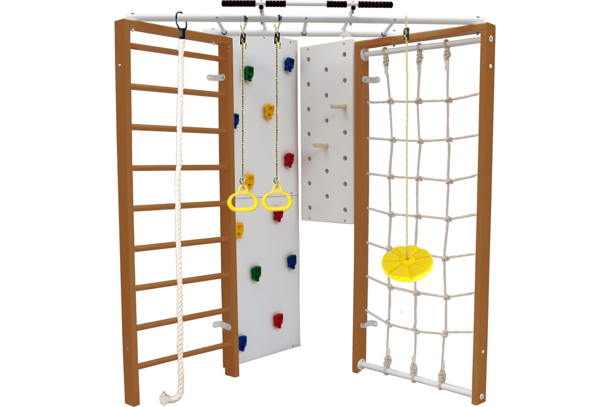 Шведская стенка Kampfer Fantastic, №2 ореховый, желтая лиана K07139009 – домашний спортивный комплекс, который включает в себя обширный набор аксессуаров: турник, шведскую стенку, канатный лаз, скалодром, пегборд, канат, кольца и лиану.
