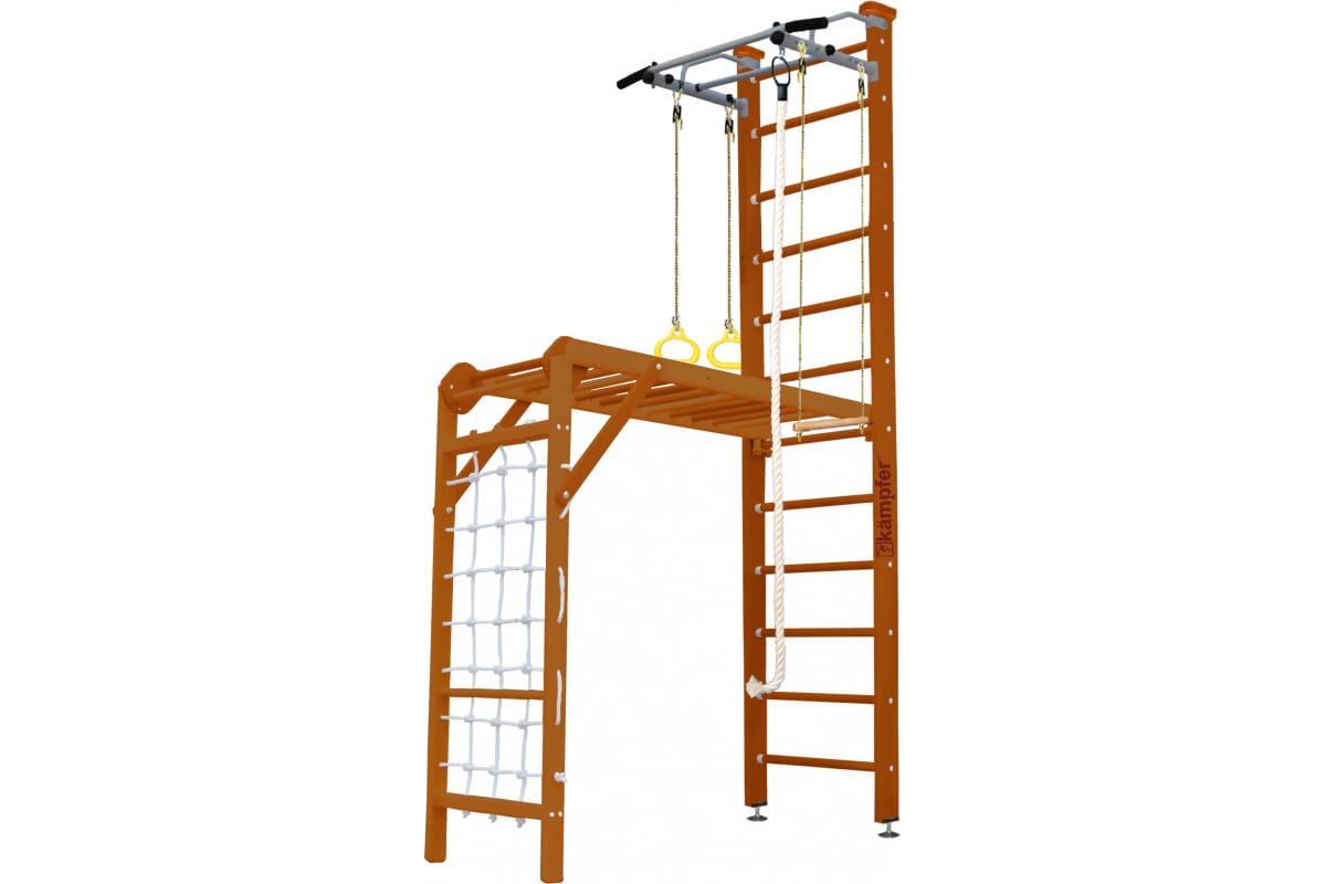 Шведская стенка Kampfer Union Ceiling, №3 классический, высота 3м, антик, турник K06810013 представляет собой домашний спортивный комплекс, который включает в себя классическую шведскую стенку и металлический турник, а также набор из самых популярных навесных аксессуаров: канат, кольца, трапеция, уголок сетка-рукоход.