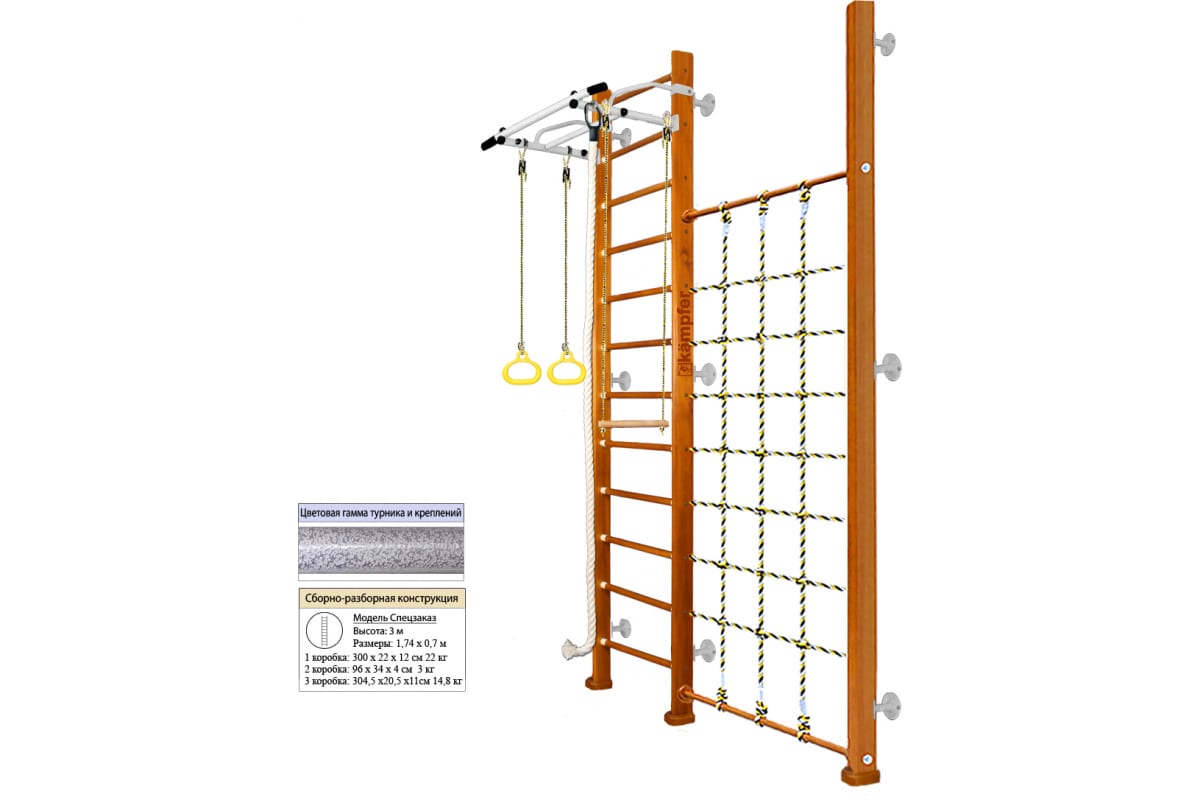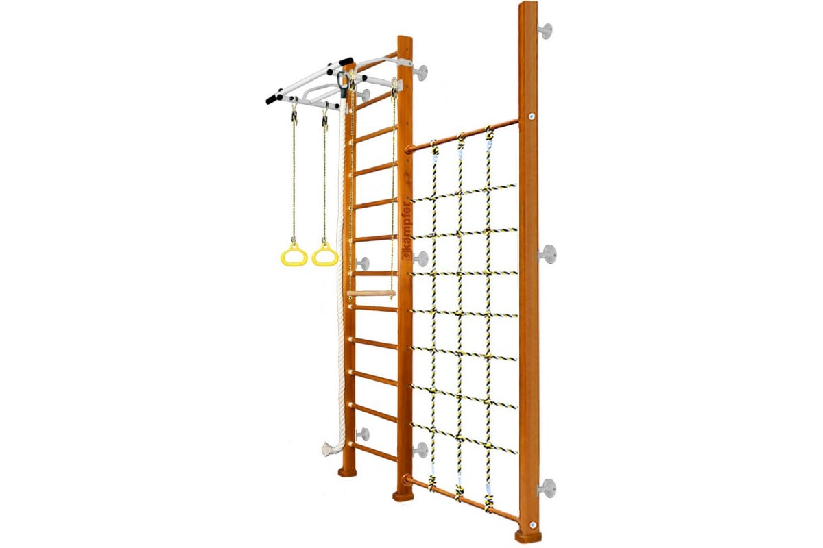 Шведская стенка Kampfer Winner Wall, №3 классический, высота 3м, антик, турник K03991013 – домашний спортивный комплекс, который включает в себя шведскую стенку, металлический турник, канат, кольца, трапецию и канатный лаз.