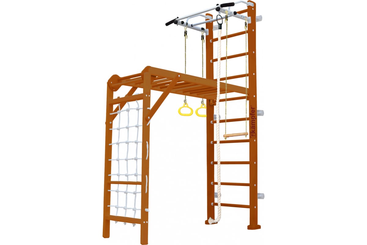 Шведская стенка Kampfer Union Wall, №3 классический, стандарт, белый, турник K06809016 представляет собой домашний спортивный комплекс, который включает в себя классическую шведскую стенку и металлический турник, а также набор из самых популярных навесных аксессуаров: канат, кольца, трапеция, уголок сетку-рукоход.