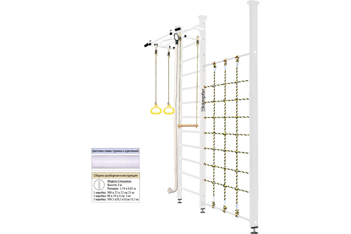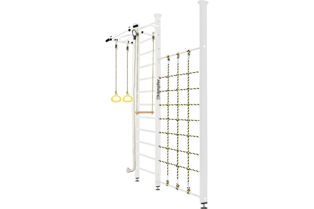 Шведская стенка Kampfer Winner Ceiling, №6 жемчужный, высота 3м, белый, турник K03993026 – домашний спортивный комплекс, который включает в себя шведскую стенку, металлический турник, канат, кольца, трапецию и канатный лаз.