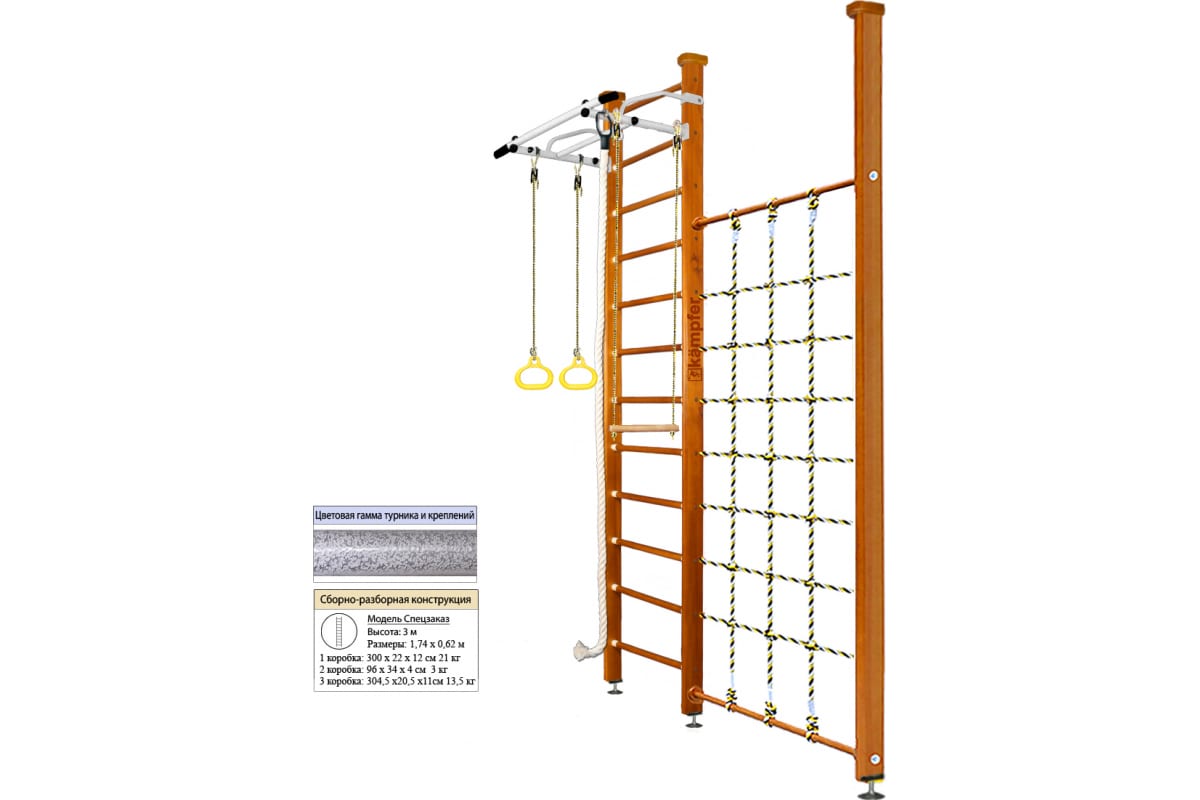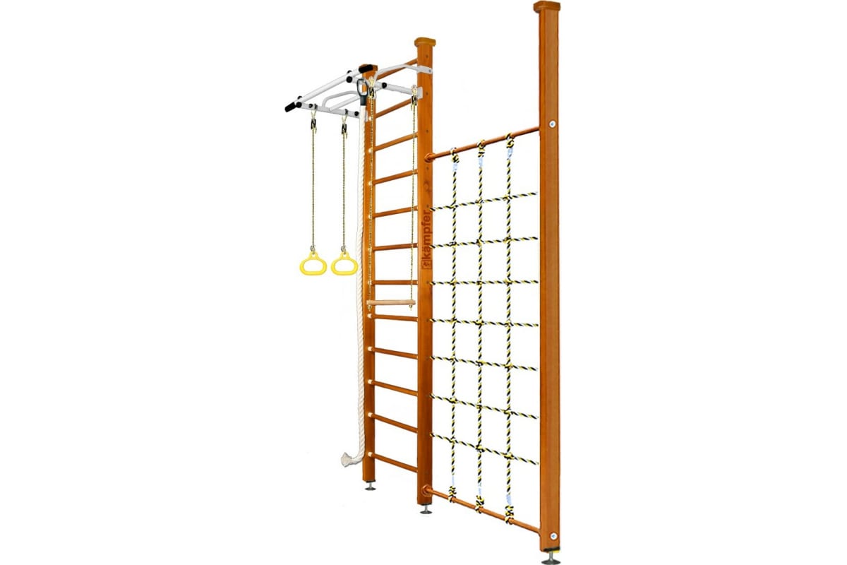 Шведская стенка Kampfer Winner Ceiling, №3 классический, высота 3м, антик, турник K03993013 – домашний спортивный комплекс, который включает в себя шведскую стенку, металлический турник, канат, кольца, трапецию и канатный лаз.