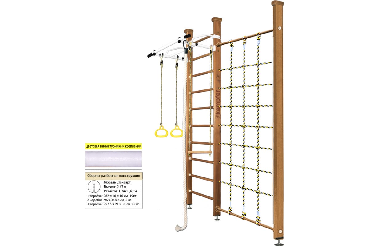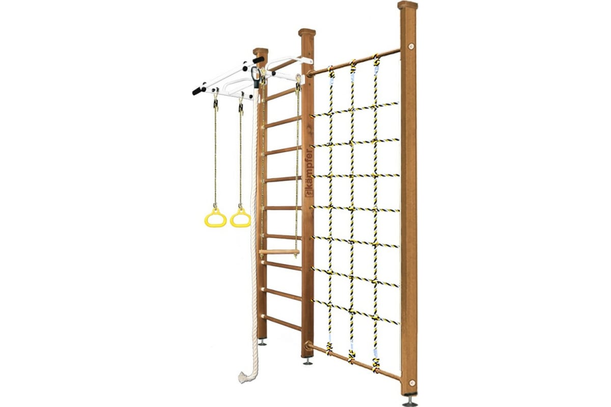 Шведская стенка Kampfer Winner Ceiling, №2 ореховый, стандарт, белый, турник K03993012 – домашний спортивный комплекс, который включает в себя шведскую стенку, металлический турник, канат, кольца, трапецию и канатный лаз.