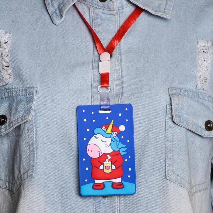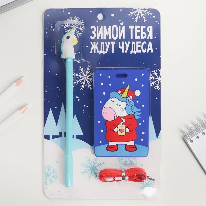 Набор новогодний "Единорог"чехол для бейджа, ручка, лента