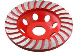 Чашка алмазная ЗУБР Мастер Турбо-Плюс 33375-115 является сменным элементом для угловых шлифовальных машин мощностью не менее 950 Вт. Применяется для зачистки, выравнивания, снятия краски и шлифования поверхностей изделий из бетонных материалов, гранита, природного и искусственного камня. Отличается высокой производительностью, длительным рабочим ресурсом и не требует охлаждения водой. Высота алмазного слоя - 5 мм.