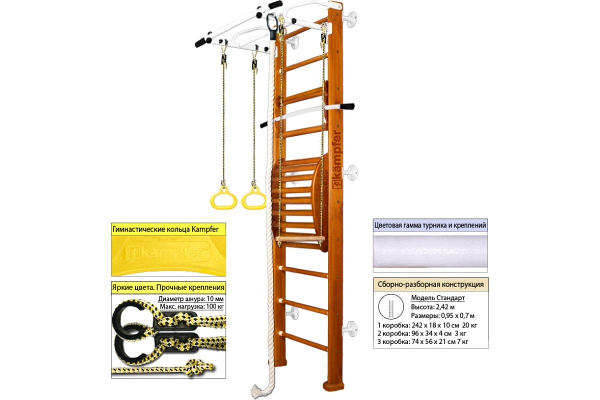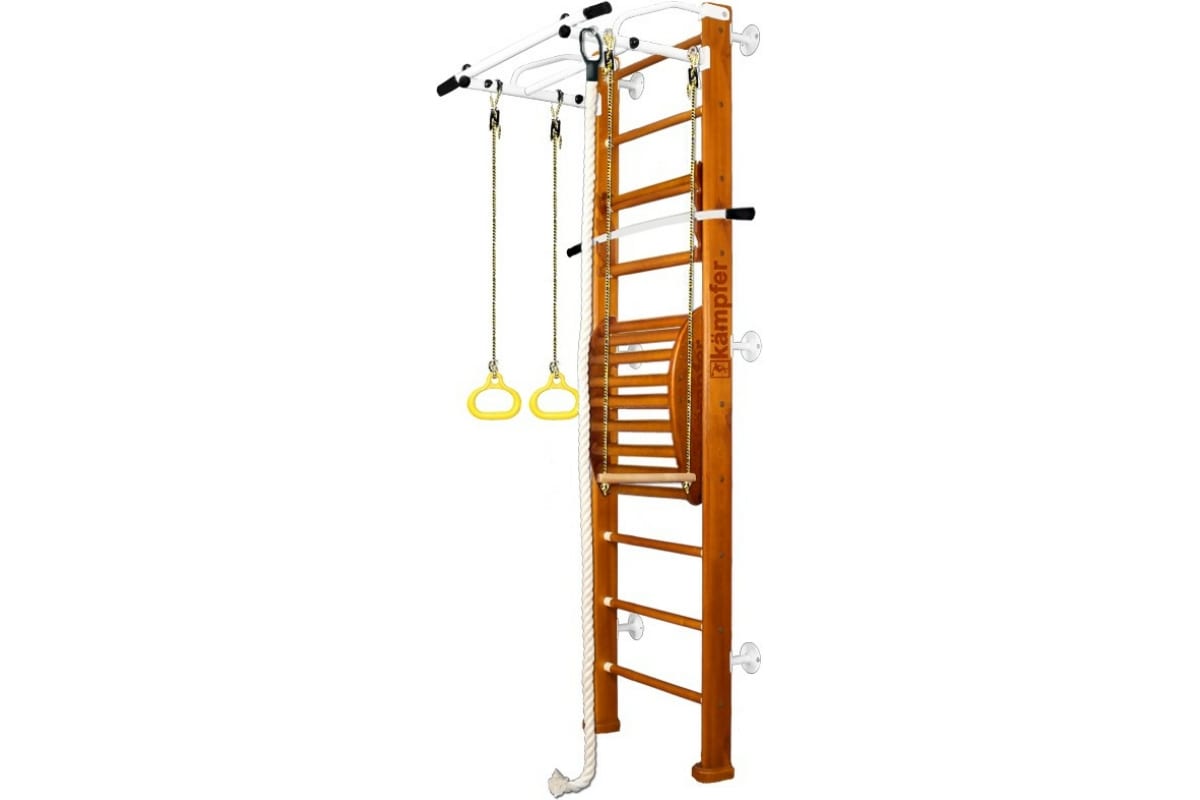 Шведская стенка Kampfer Helena Maxi Wall, №3 классический, стандарт, белый, турник K03622016 – детский спортивный комплекс, который включает в себя шведскую стенку, турник, канат, кольца, трапецию и тренажер для спины Kampfer Posture Wall.