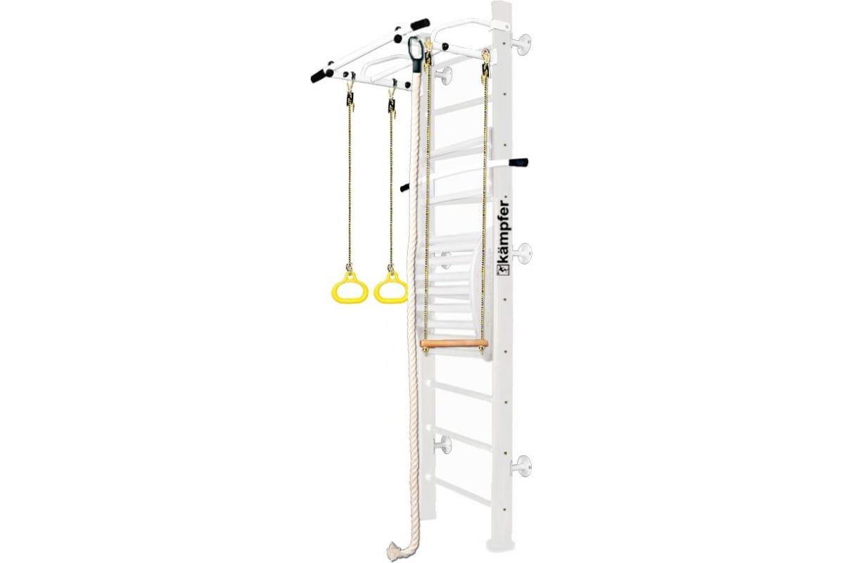 Шведская стенка Kampfer Helena Maxi Wall, №6 жемчужный, стандарт, белый, турник K03622028 – детский спортивный комплекс, который включает в себя шведскую стенку, турник, канат, кольца, трапецию и тренажер для спины Kampfer Posture Wall.