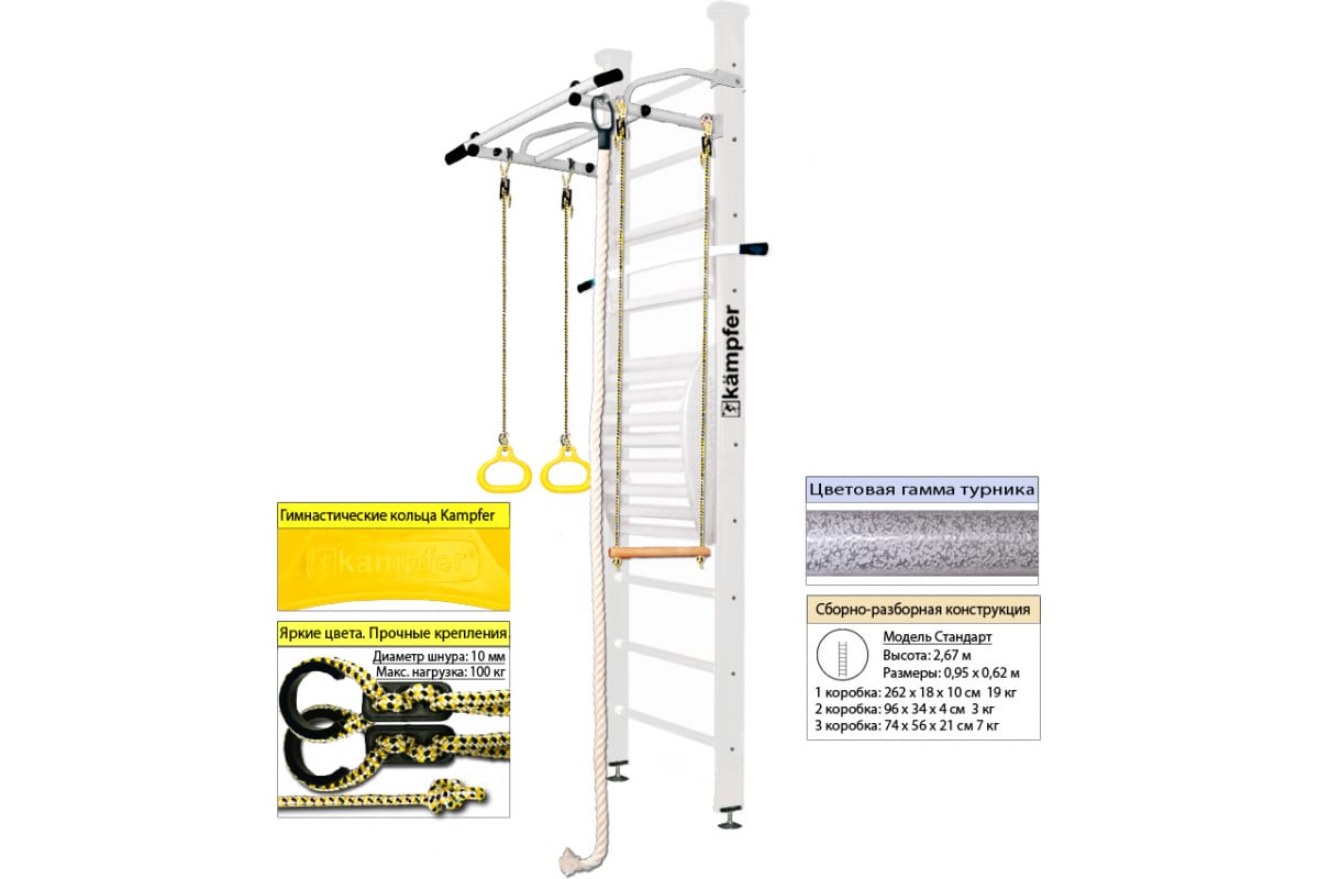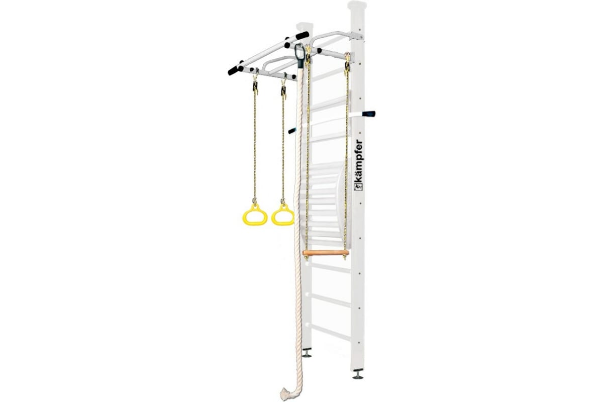 Шведская стенка Kampfer Helena Maxi Ceiling №6, жемчужный, стандарт, антик, турник K01405027 – детский спортивный комплекс, который включает в себя шведскую стенку, турник, канат, кольца, трапецию и тренажер для спины Kampfer Posture Wall.