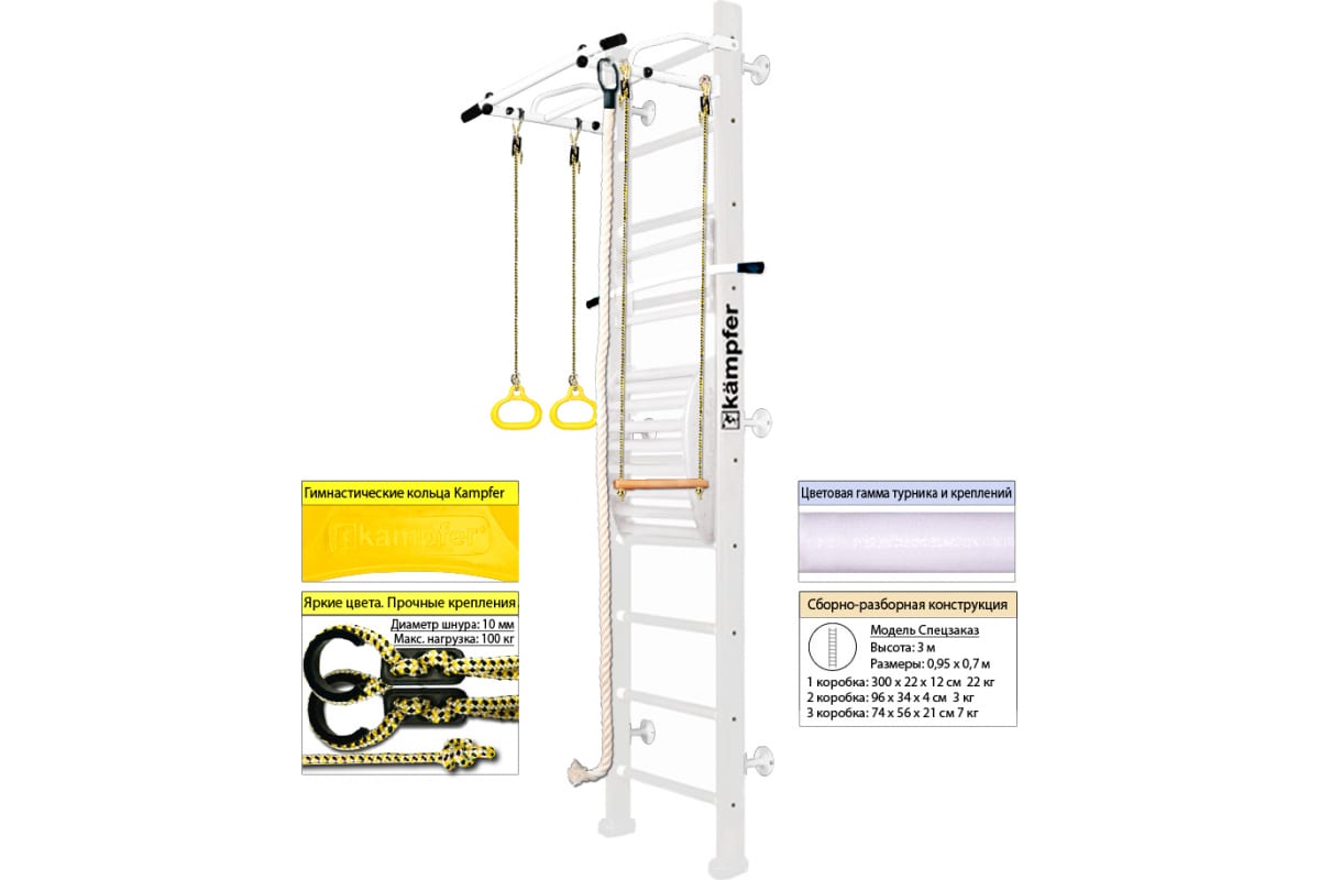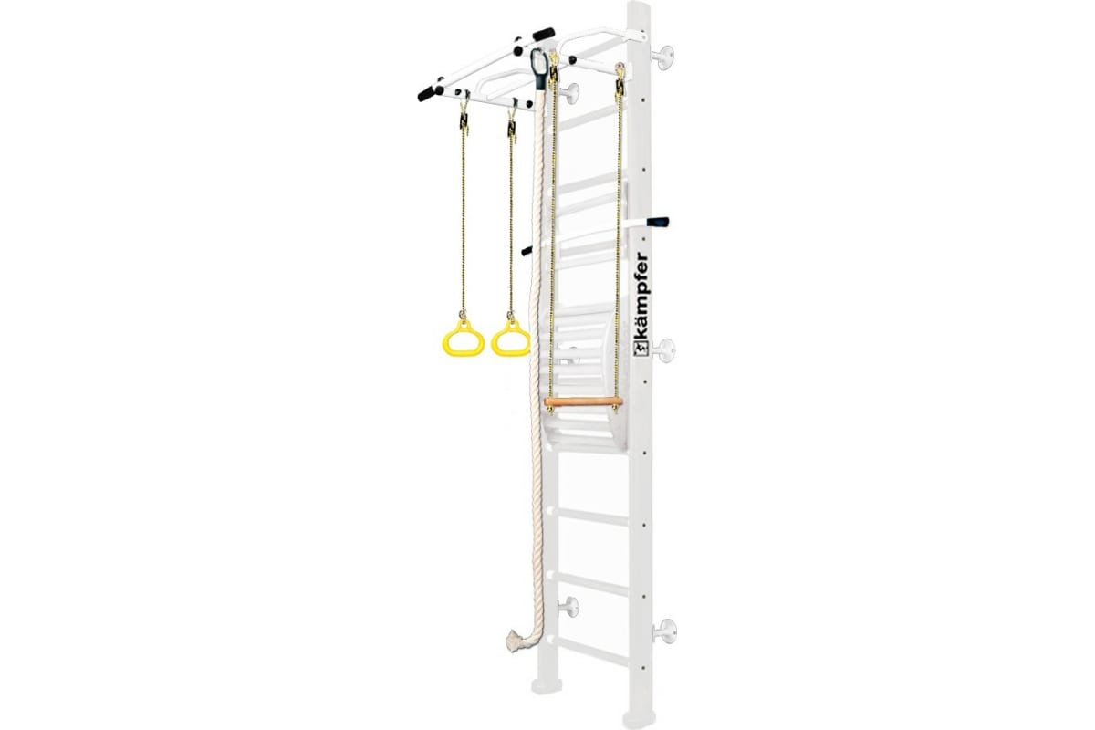 Шведская стенка Kampfer Helena Maxi Wall, №6 жемчужный, высота 3м, белый, турник K03622026 – детский спортивный комплекс, который включает в себя шведскую стенку, турник, канат, кольца, трапецию и тренажер для спины Kampfer Posture Wall.