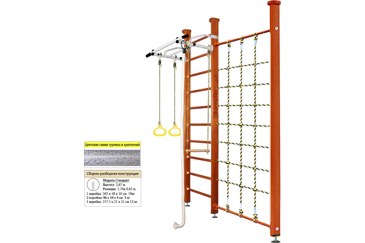 Шведская стенка Kampfer Winner Ceiling, №4 вишневый, стандарт, антик, турник K03993019 – домашний спортивный комплекс, который включает в себя шведскую стенку, металлический турник, канат, кольца, трапецию и канатный лаз.