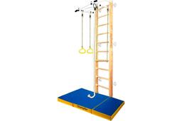 Шведская стенка с матом Kampfer Helena Wall, №1 натуральный, стандарт, турник, мат №6 синий K09981003