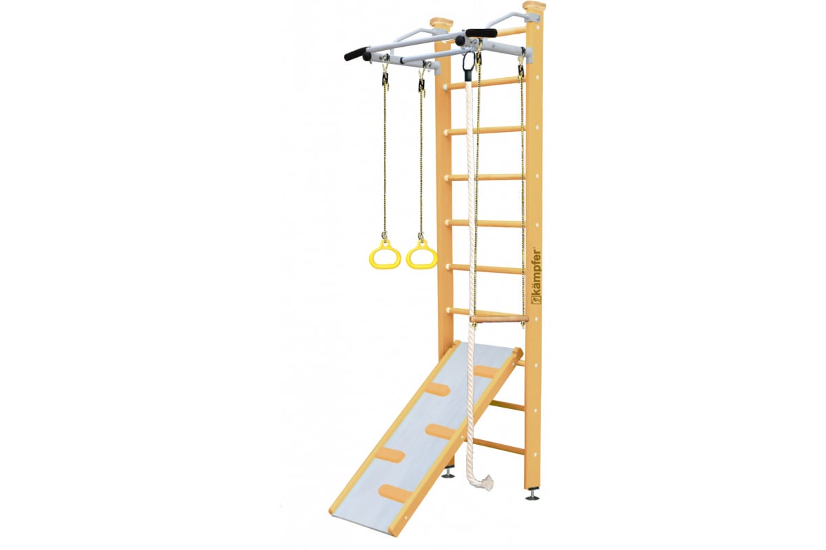 Шведская стенка Kampfer Ride Ceiling, №1 натуральный, стандарт, белый, турник K06812008 – домашний спортивный комплекс, который включает в себя классическую шведскую стенку и металлический турник, а также набор из самых популярных навесных аксессуаров: канат, кольца, трапеция и двухсторонний скат-скалолаз.