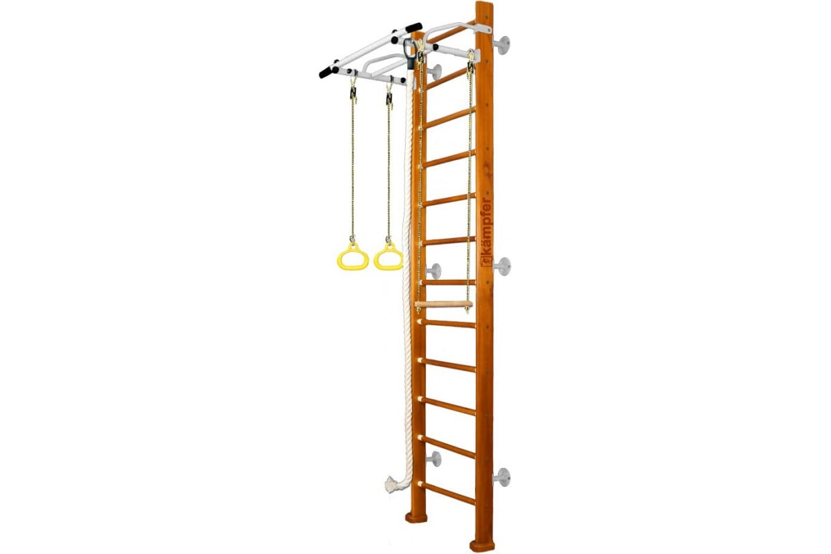 Шведская стенка Kampfer Helena Wall, №3 классический, высота 3м, антик, турник K04273013 – детский спортивный комплекс, который включает в себя шведскую стенку, турник, канат, кольца и трапецию.