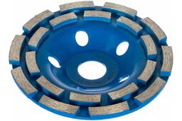 Фреза алмазная торцевая сегментная Diam 000549 используется совместно с угловыми шлифовальными машинами. Ее применяют для шлифования поверхностей из бетона, строительных блоков, кирпичной кладки. Двойная сегментированная поверхность чашки не требует водяного охлаждения во время работы.