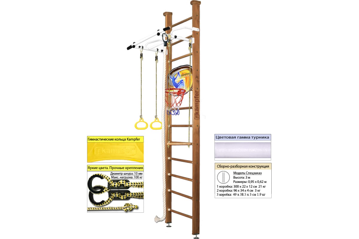 Шведская стенка Kampfer Helena Ceiling Basketball Shield №2, ореховый, высота 3 м, белый, турник K06547010