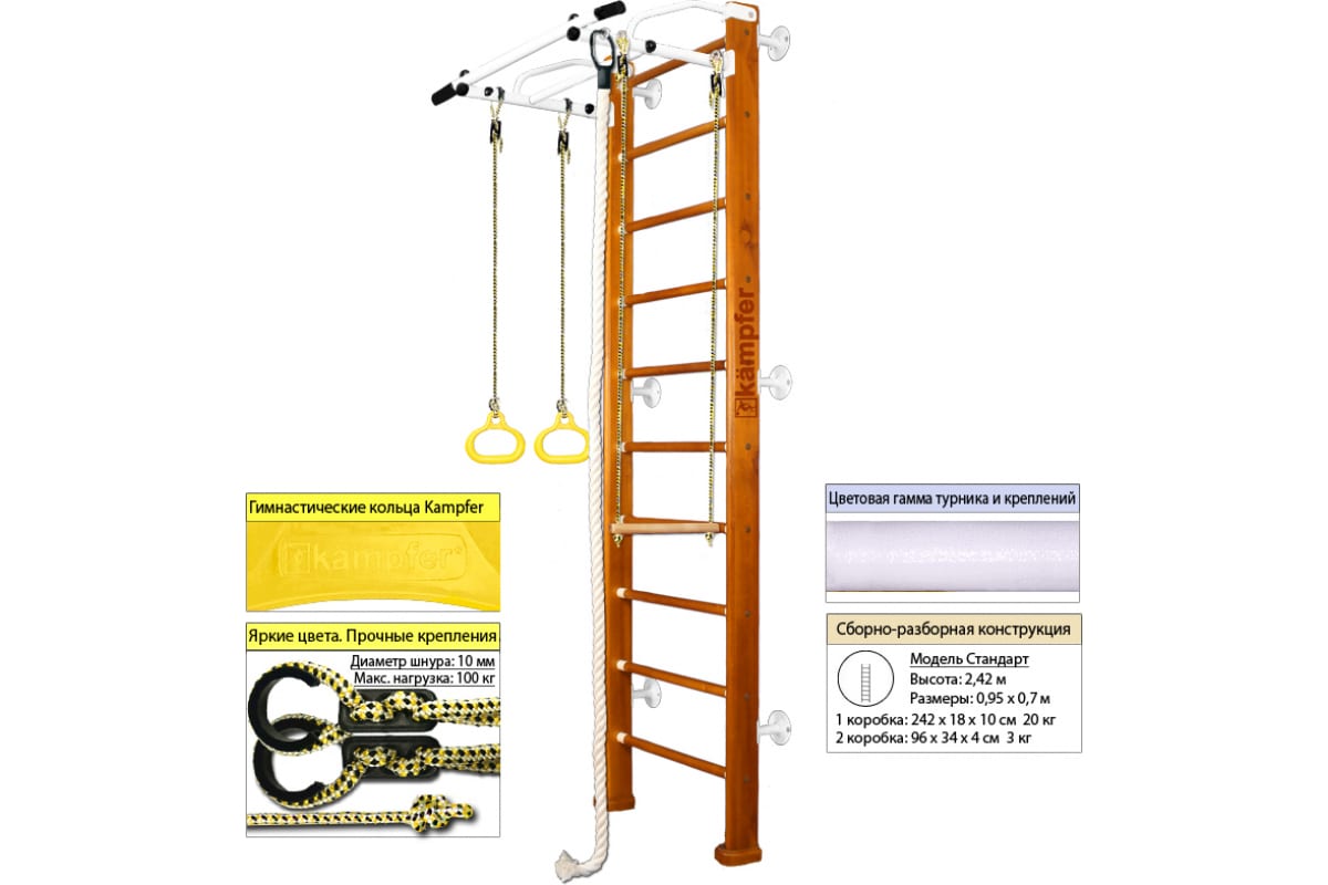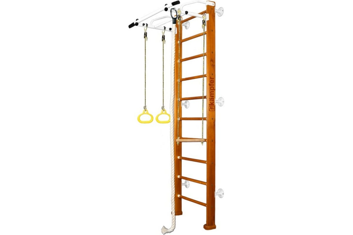 Шведская стенка Kampfer Helena Wall, №3 классический, стандарт, белый, турник K04273016 – детский спортивный комплекс, который включает в себя шведскую стенку, турник, канат, кольца и трапецию.