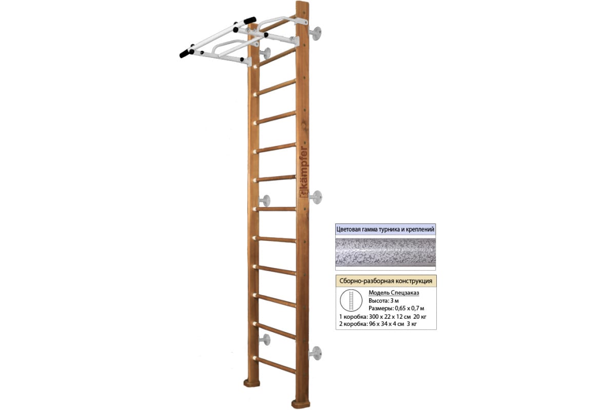 Шведская стенка Kampfer Swedish Wall, №2 ореховый, высота 3м, антик, турник K04290009