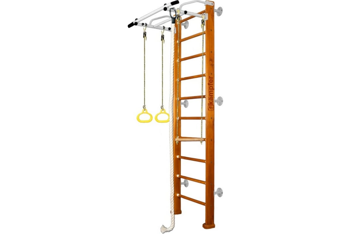 Шведская стенка Kampfer Helena Wall, №3 классический, стандарт, антик, турник K04273015 – детский спортивный комплекс, который включает в себя шведскую стенку, турник, канат, кольца и трапецию.