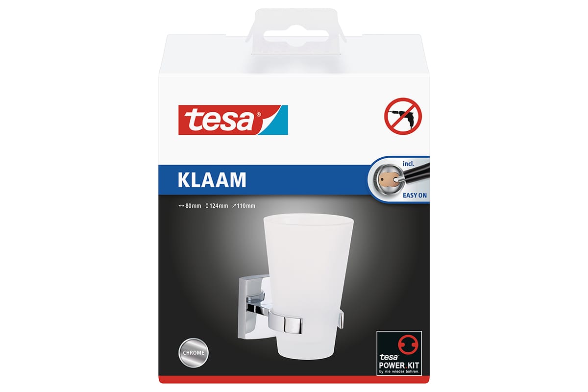 Держатель для зубных щеток TESA Klaam, самоклеящийся, 124x80x110 мм 40270-00000-00 легко монтируется на стене и не требует сверления.