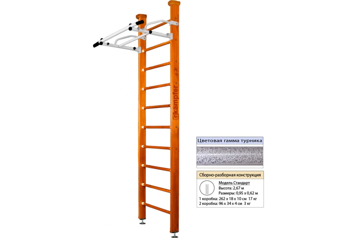 Шведская стенка Kampfer Swedish Ceiling, №3 классический, стандарт, антик, турник K04289015 – детский спортивный комплекс, состоящий из шведской стенки и турника.