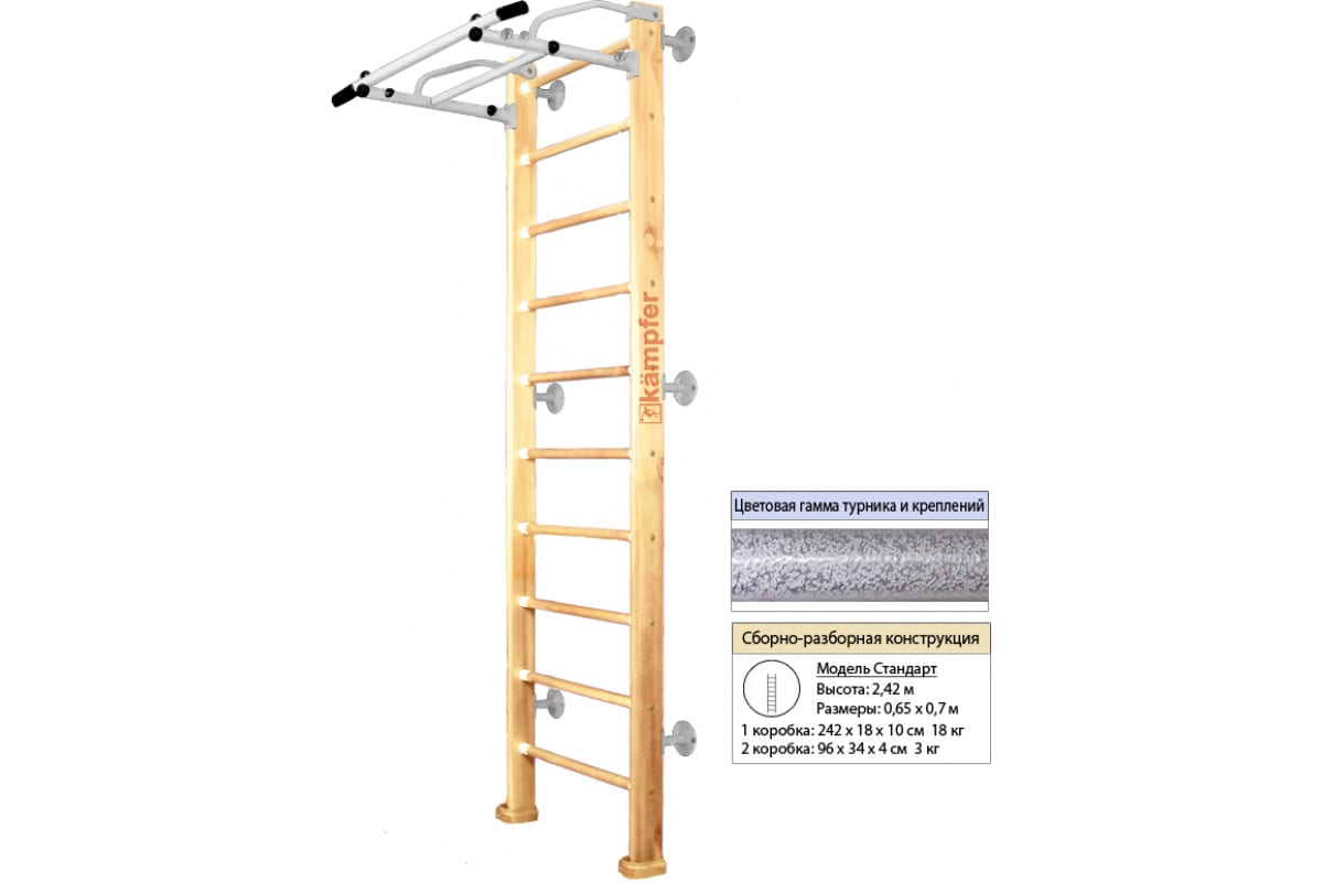 Шведская стенка Kampfer Swedish Wall, №1 натуральный, стандарт, антик, турник K04290007 – детский спортивный комплекс, состоящий из шведской стенки и турника.