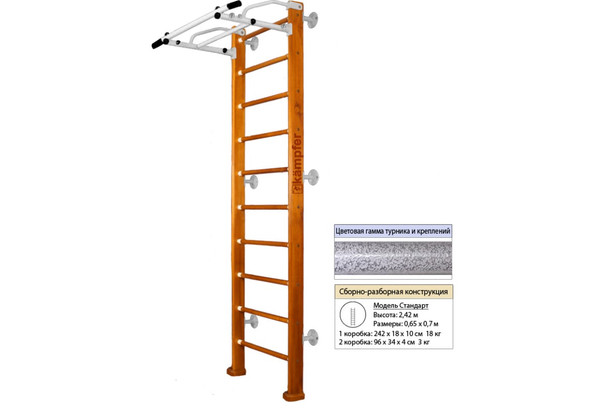 Шведская стенка Kampfer Swedish Wall, №3 классический, стандарт, антик, турник K04290015 – детский спортивный комплекс, состоящий из шведской стенки и турника.