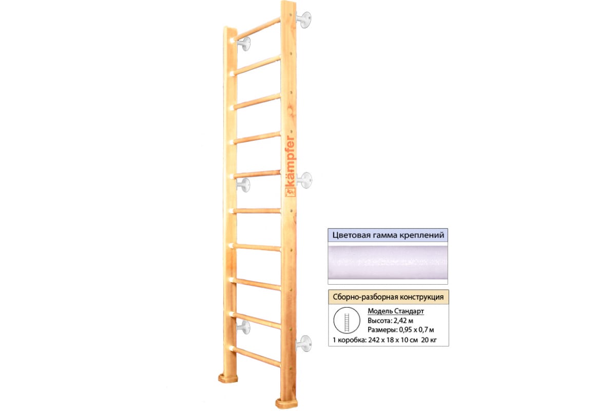 Шведская стенка Kampfer Classic Wall, №1 натуральный, стандарт, белый K04297008 предназначена для занятий физическими упражнениями, развивающими силу и координацию движений ребенка в домашних условиях.