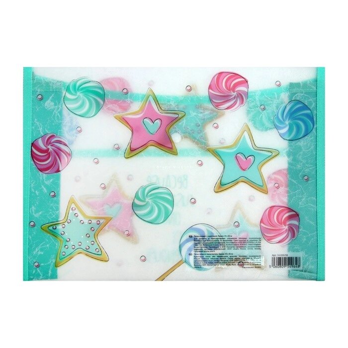 Папка-конверт на кнопке с окантовкой А4, 400 мкм, "Сладкое настроение. Звёздочки", пластик, МИКС