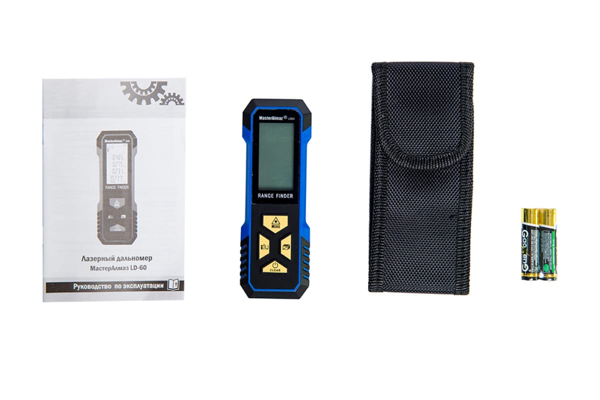 Лазерный цифровой дальномер МастерАлмаз 10505763 измеряет расстояние от 0.3 до 60 метров. Имеет функции вычисления площади, объема, одиночное, непрерывное, высоты по теореме Пифагора.