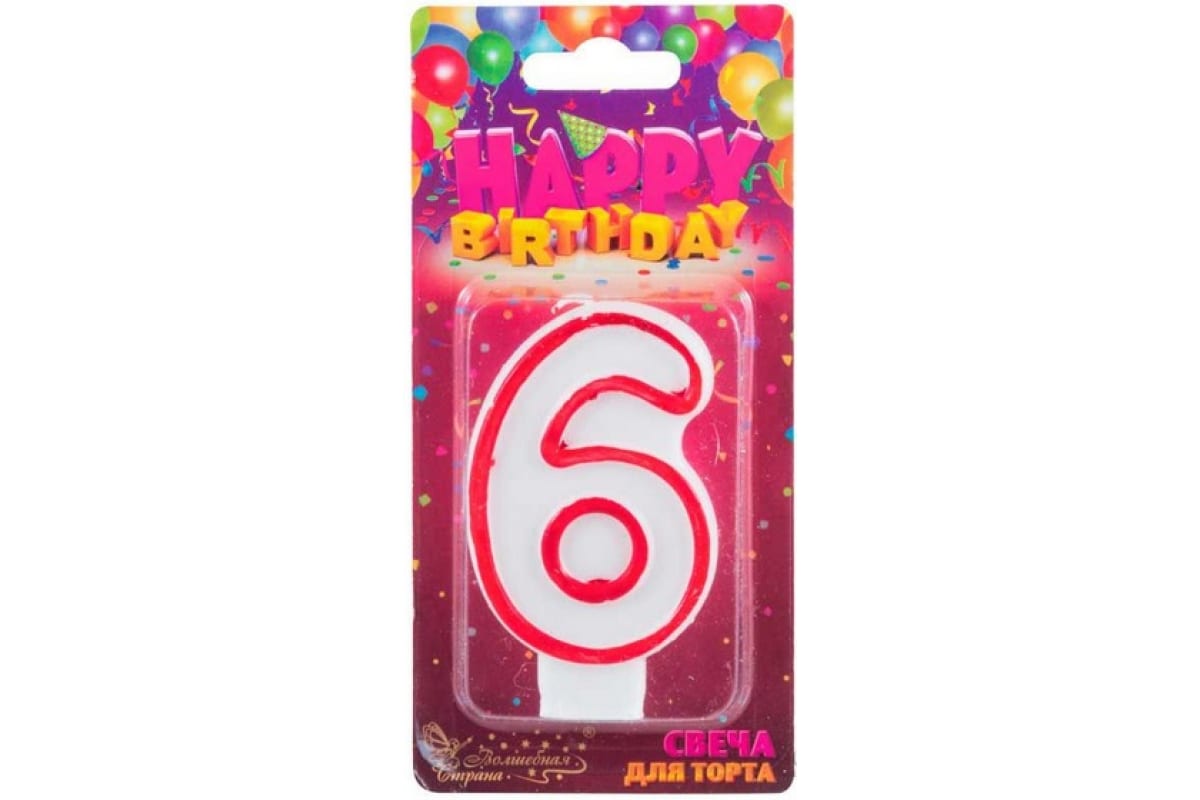 Свеча для торта Волшебная страна цифра 6 312522 предназначена для украшения торта.