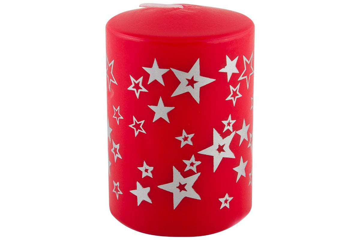 Свеча Волшебная страна Deco Christmas 56х80, Звезды серебро на красном 103295