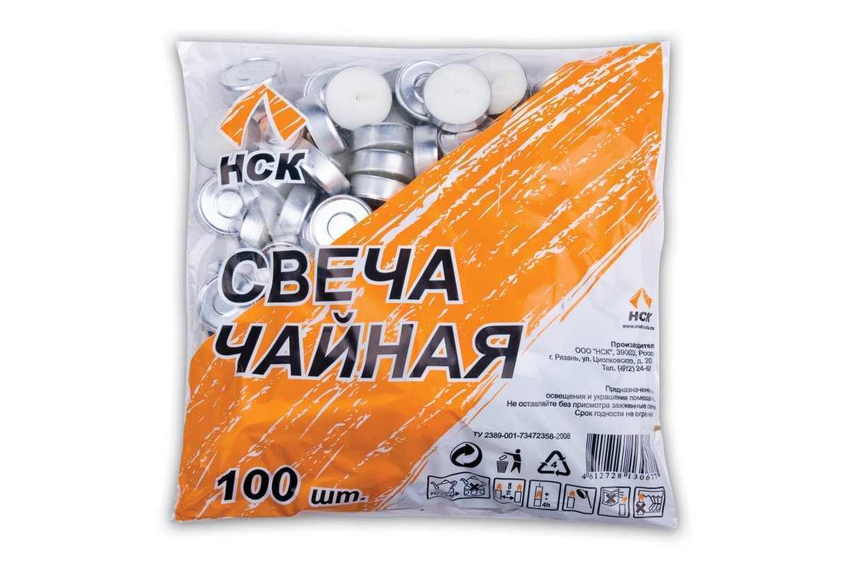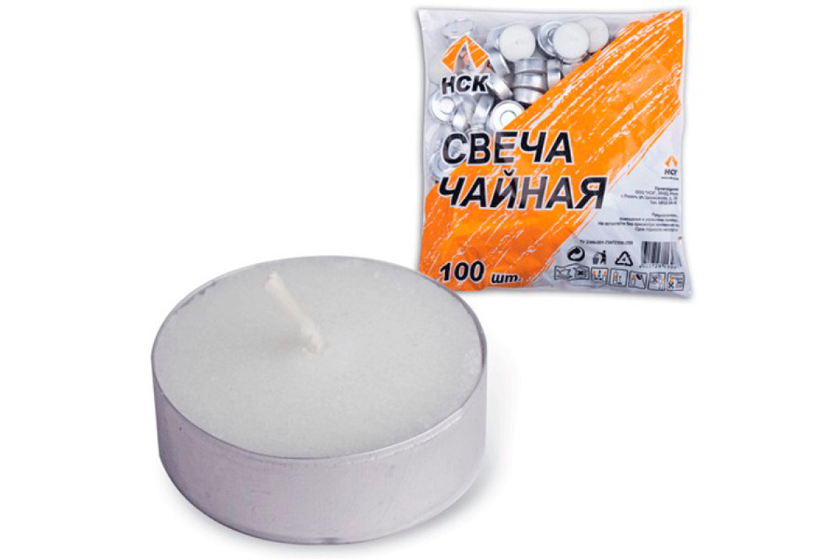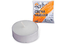 Свечи чайные в гильзе, КОМПЛЕКТ 100шт., в пакете, 30677 590410 используются в ароматической лампе, декоративных фонарях, подсвечниках различной формы, на подставках для подогрева (например, поддержание температуры в чайнике с чаем и т.д.)